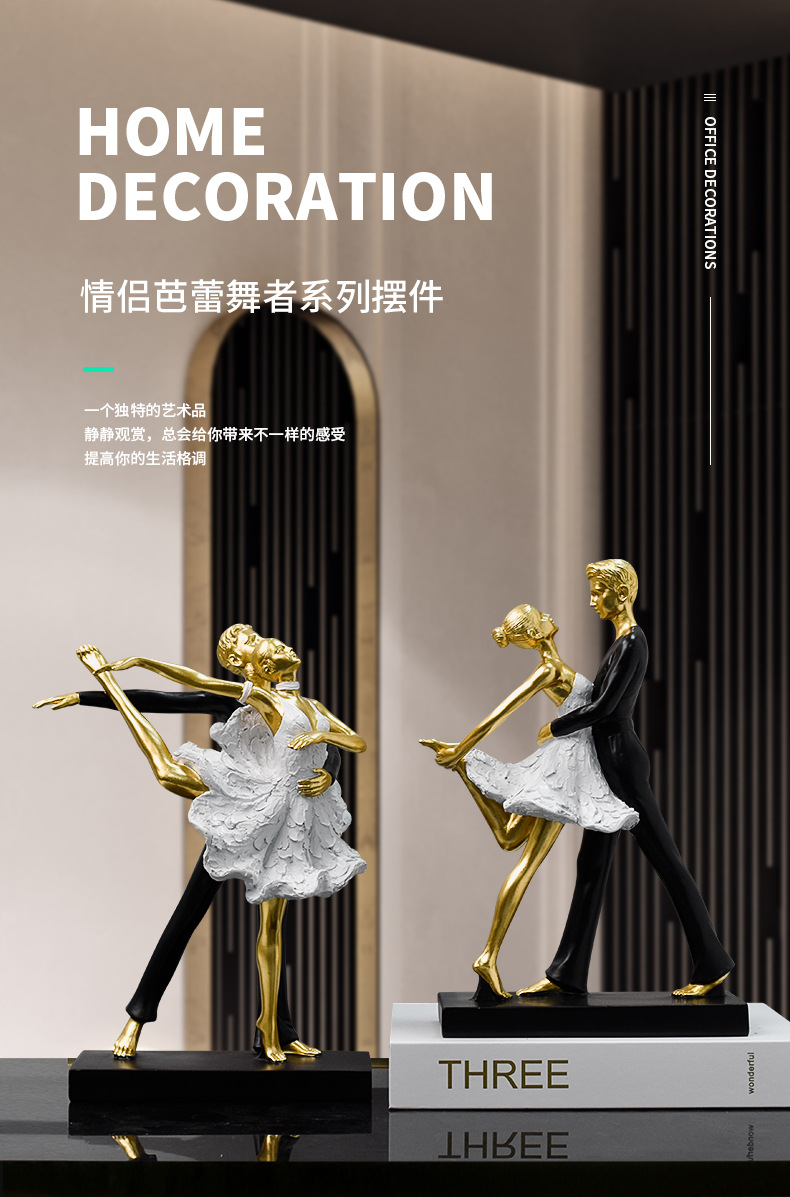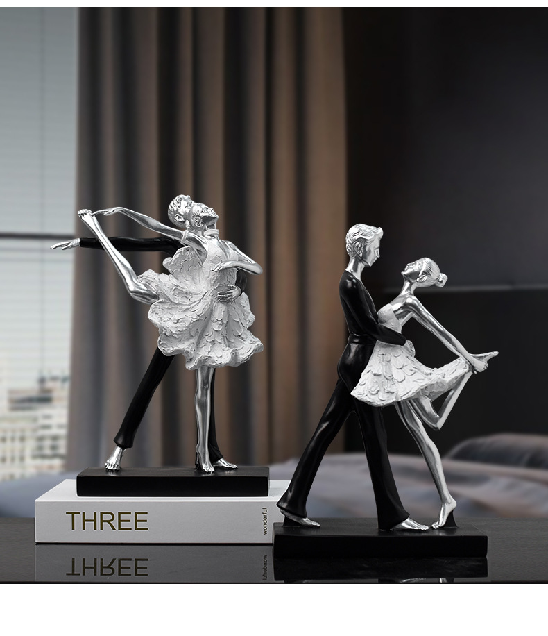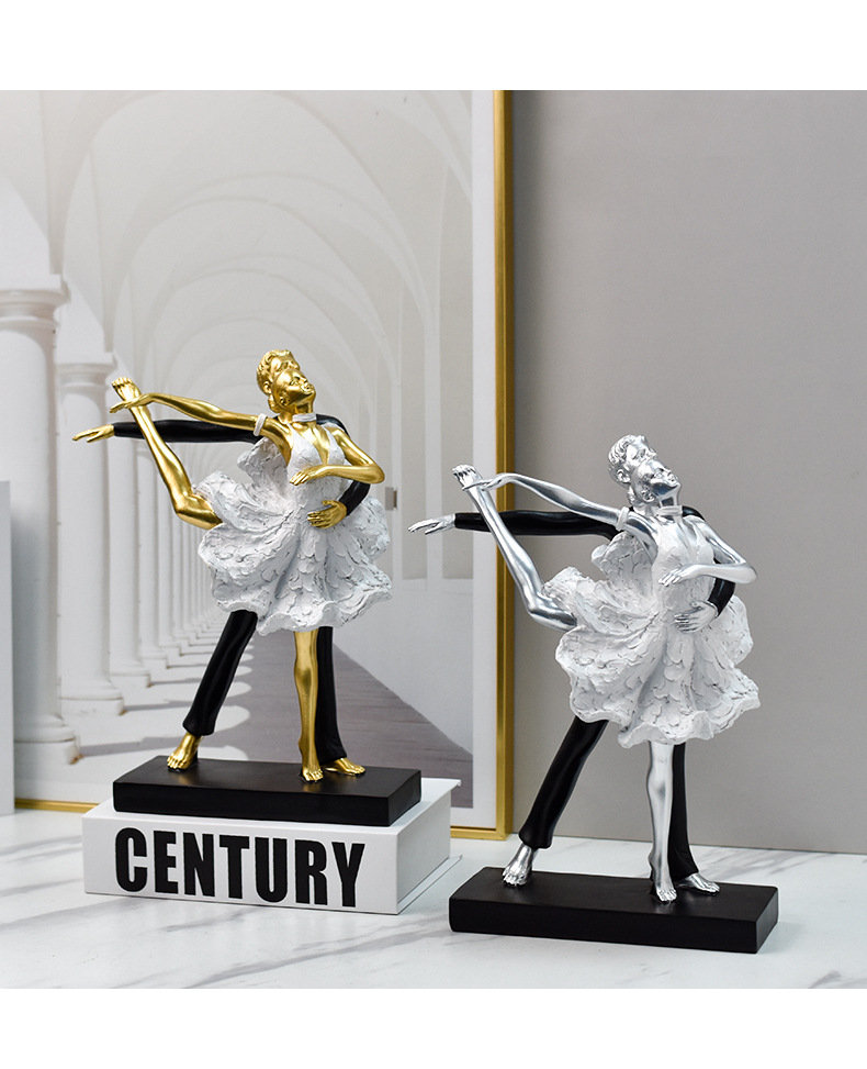 TEMU轻奢芭蕾舞树脂工艺品摆件雕塑双人爵士舞蹈纪念桌面家居装饰