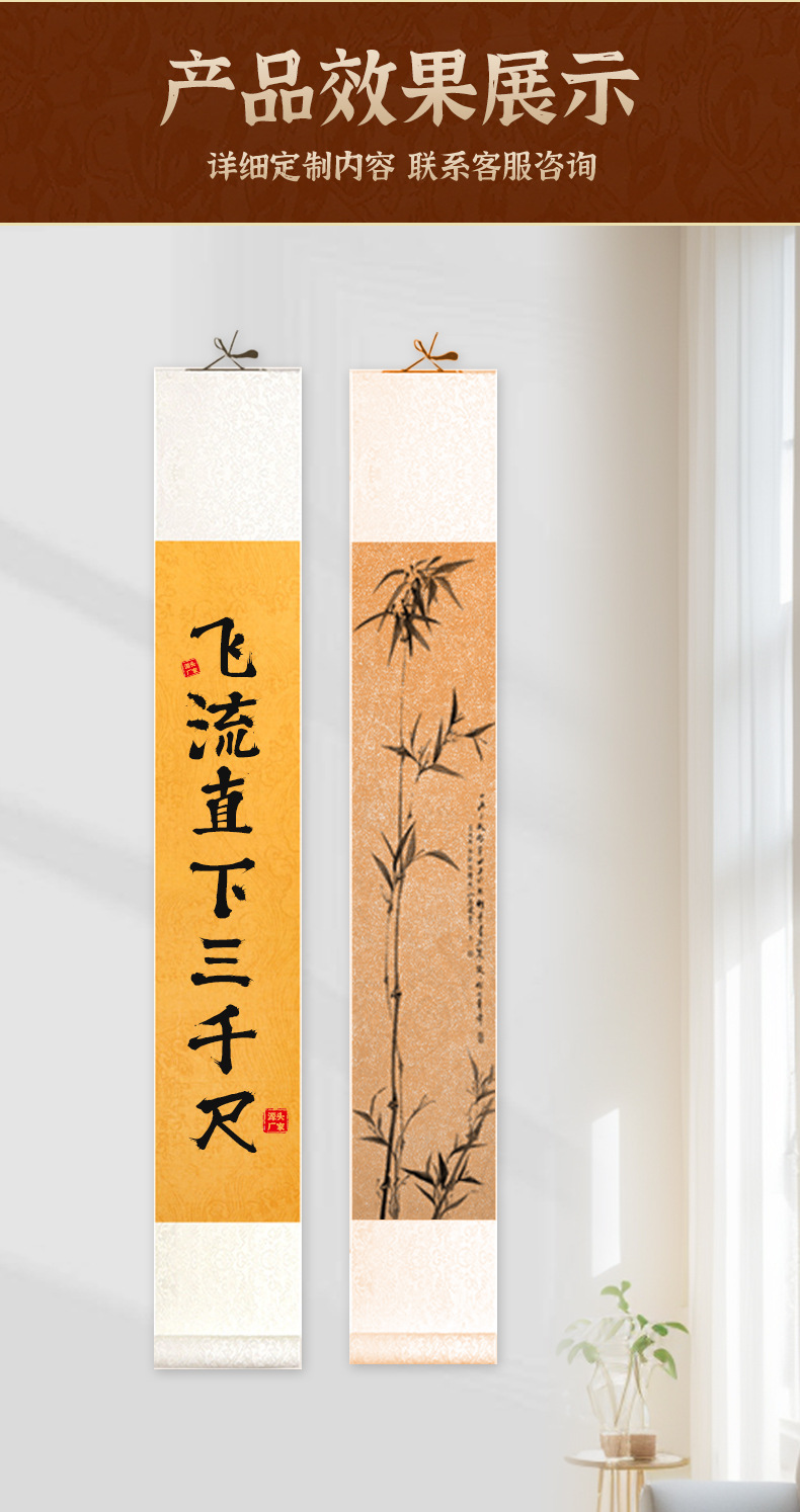 文房挂轴禅意茶室集章卷轴玄关中式书法字画卷轴挂画蜡染空白挂轴