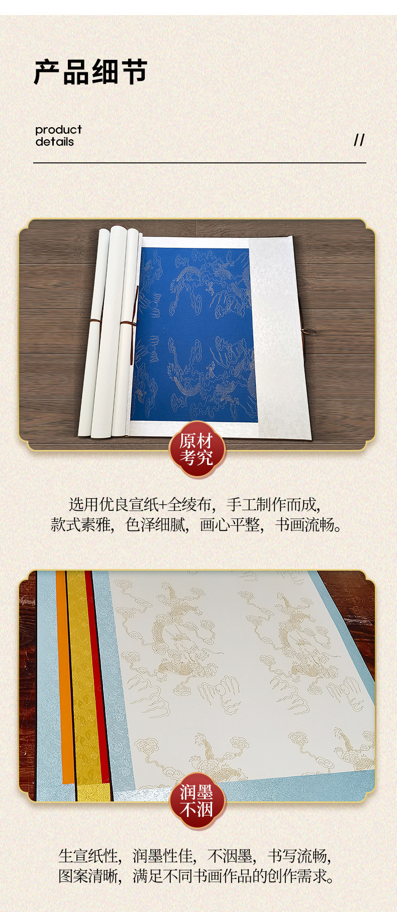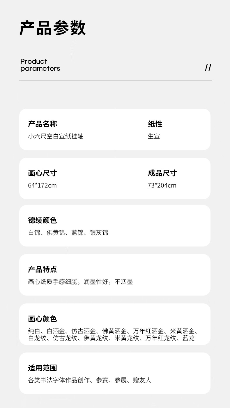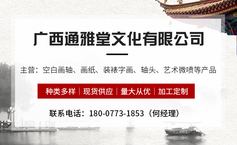 全锦绫空白宣纸卷轴国画书法纸创作纸生宣画轴挂轴精装裱挂画挂件
