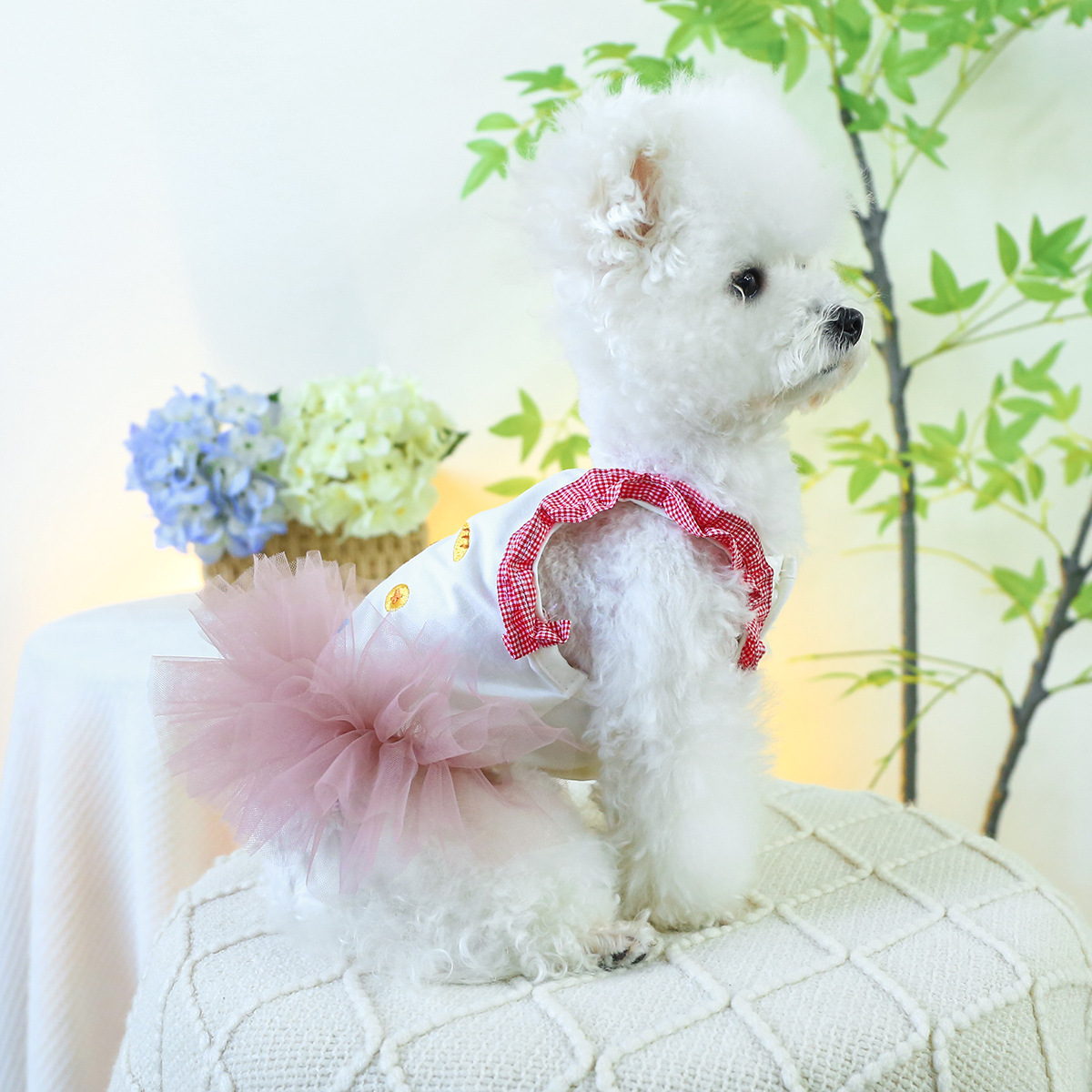 宠物圈狗狗衣服批发透气舒适公主纱裙刺绣彩虹熊纱裙休闲蓬蓬纱裙