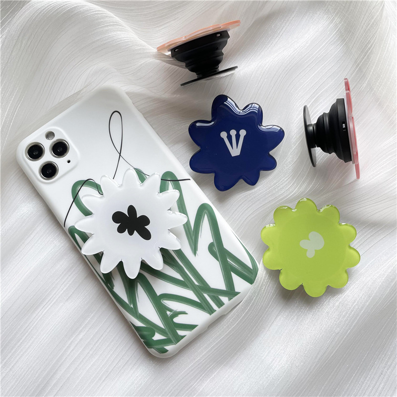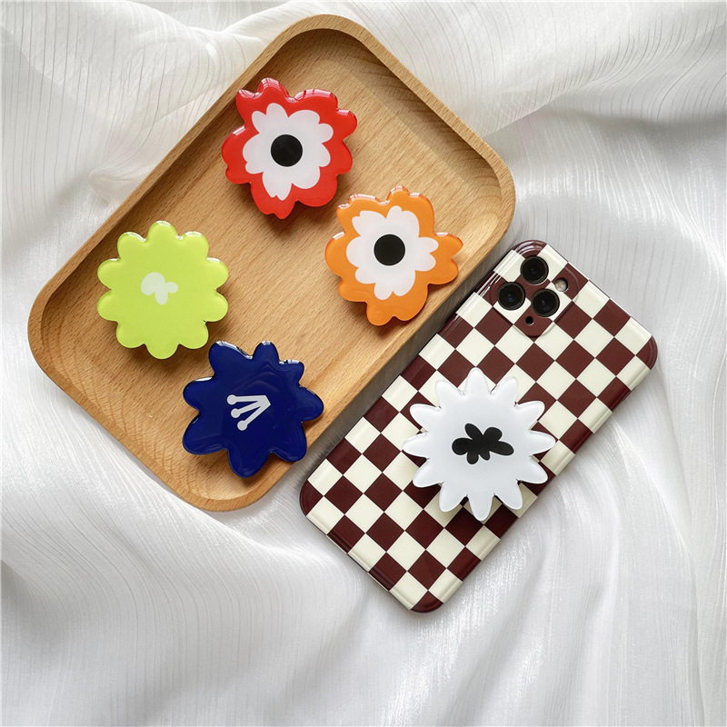 韩国ins同款印花滴胶花朵气囊支架创意懒人可伸缩桌面手机支架DIY