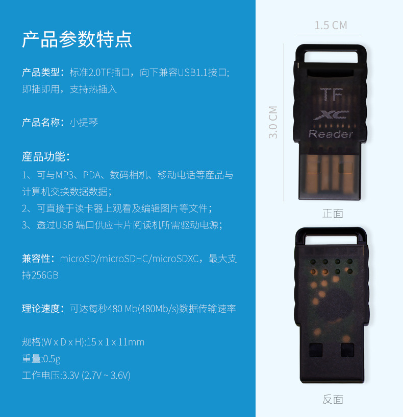 读卡器厂家直销迷你电脑安卓usb读高速车载内存卡直插tf卡读卡器