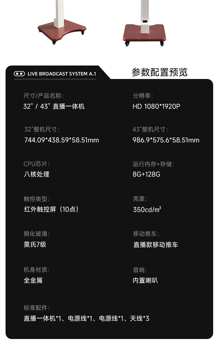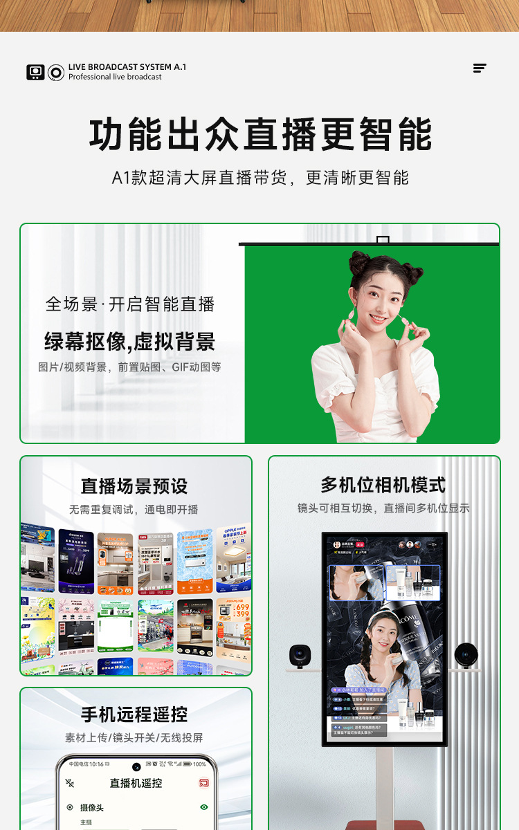 导播录播提词绿幕虚拟直播大屏一体机抖音设备投屏触摸显示器A1
