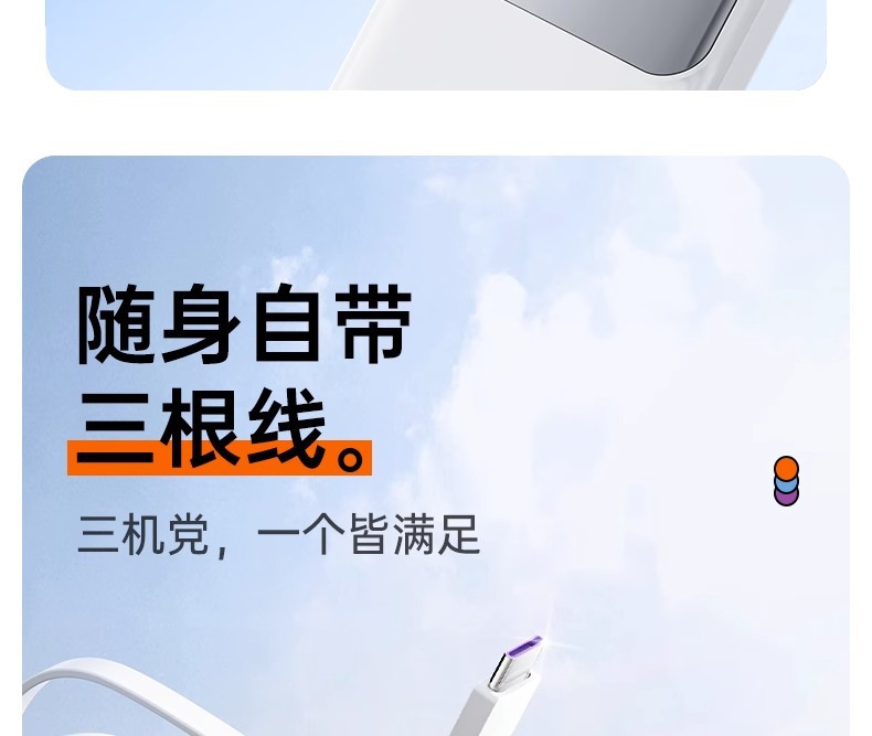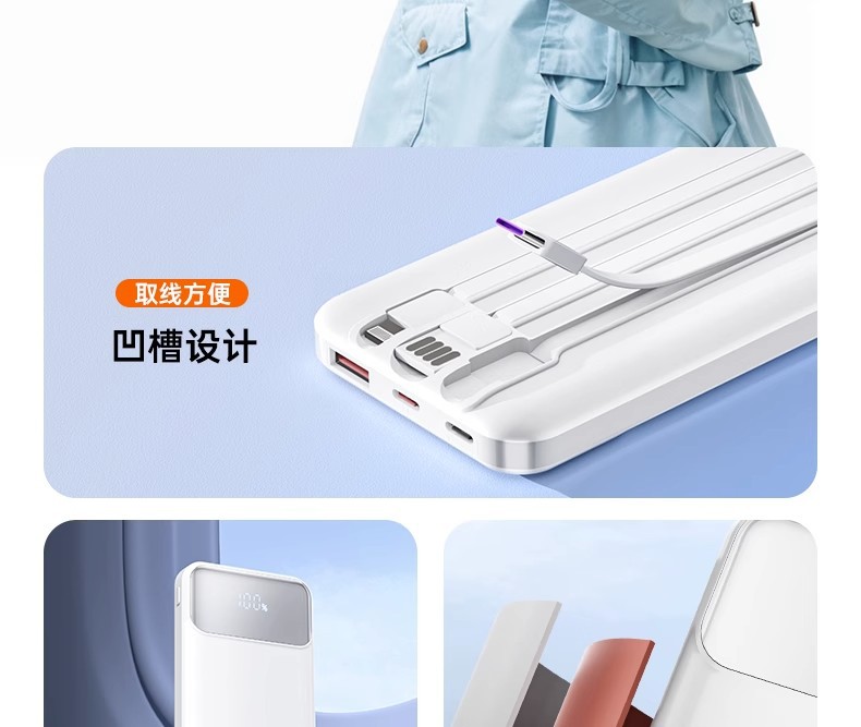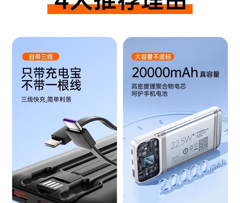 PL20充电宝自带线超大容量户外超薄小巧便携20000毫安快充PD22.5W