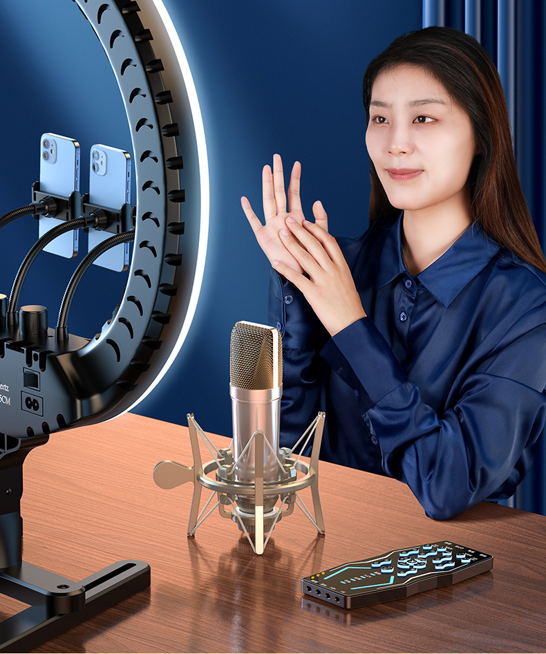 p60直播设备全套装 电脑户外手持声卡唱歌手机录音高端话筒一体机