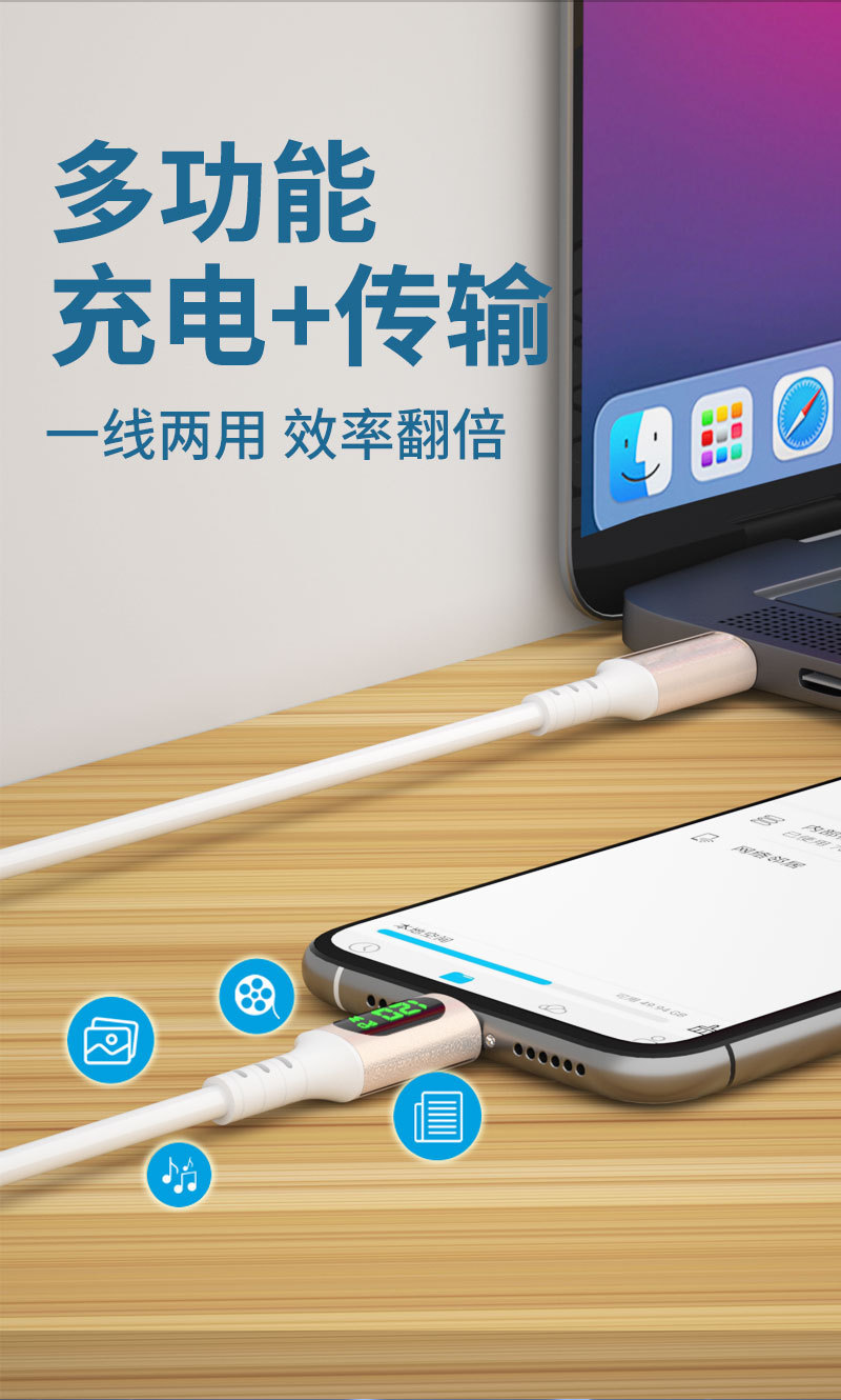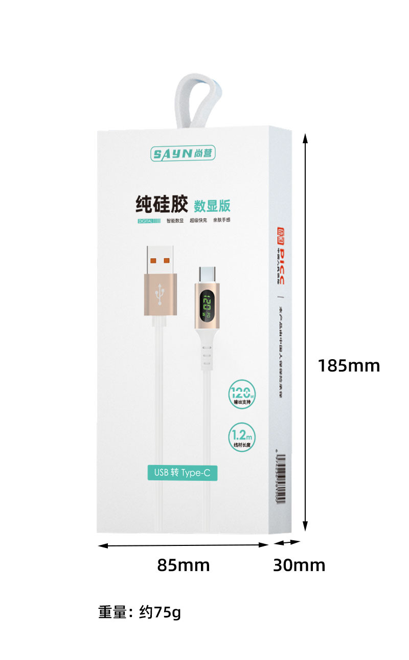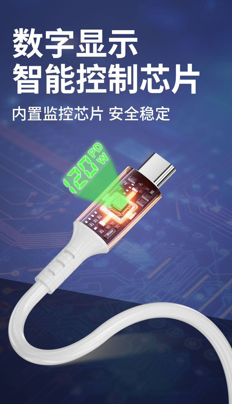 硅胶超级快充数据线适用华为小米oppovivo手机1.2米数显充电线