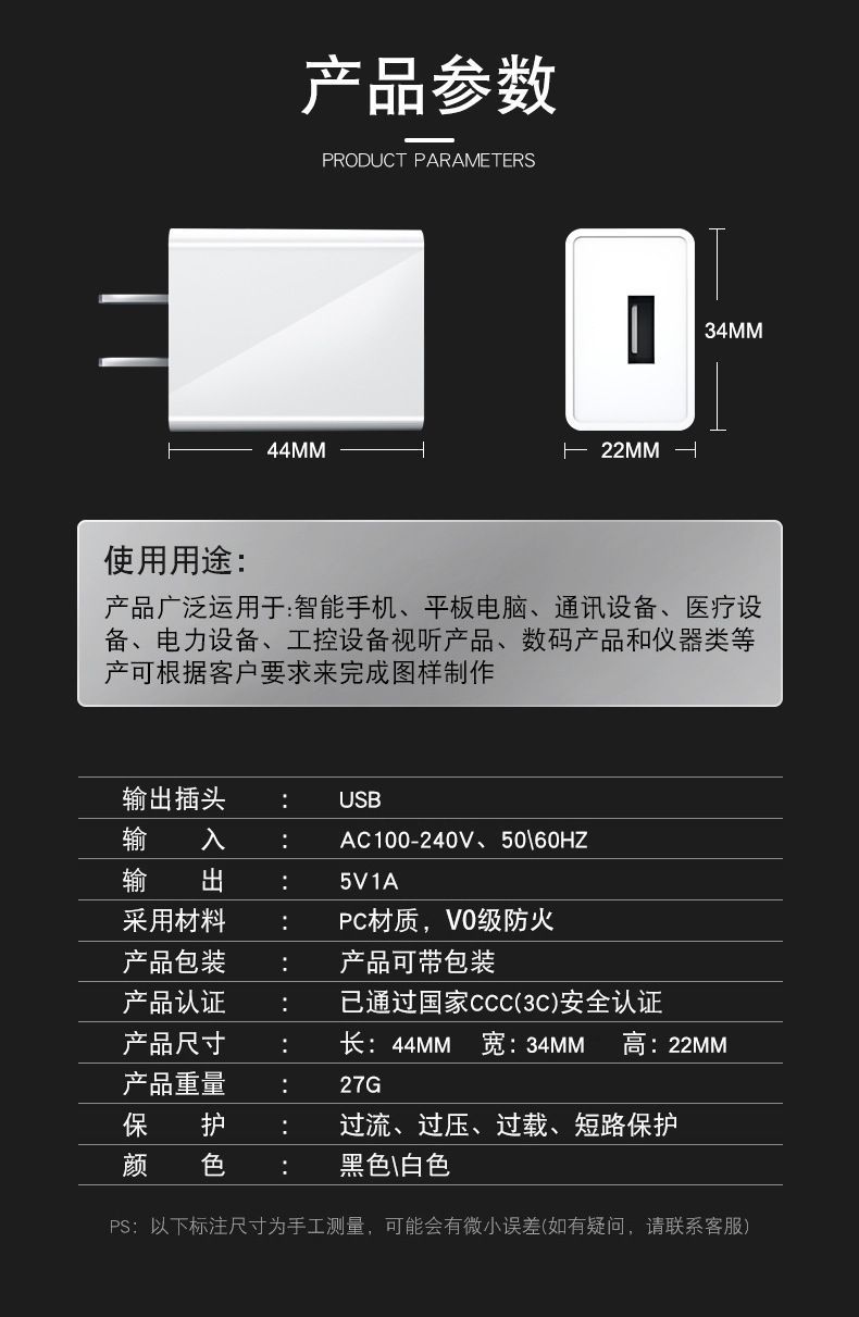 现货直销3C认证5v1a电源适配器 usb通用充电头小家电专用充电器