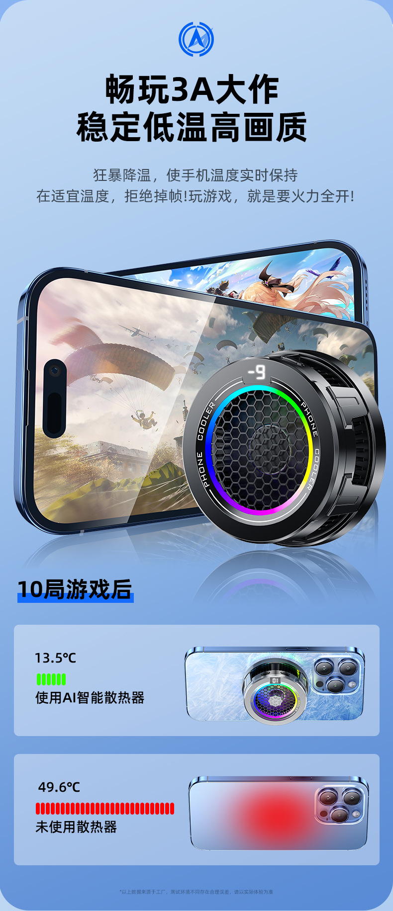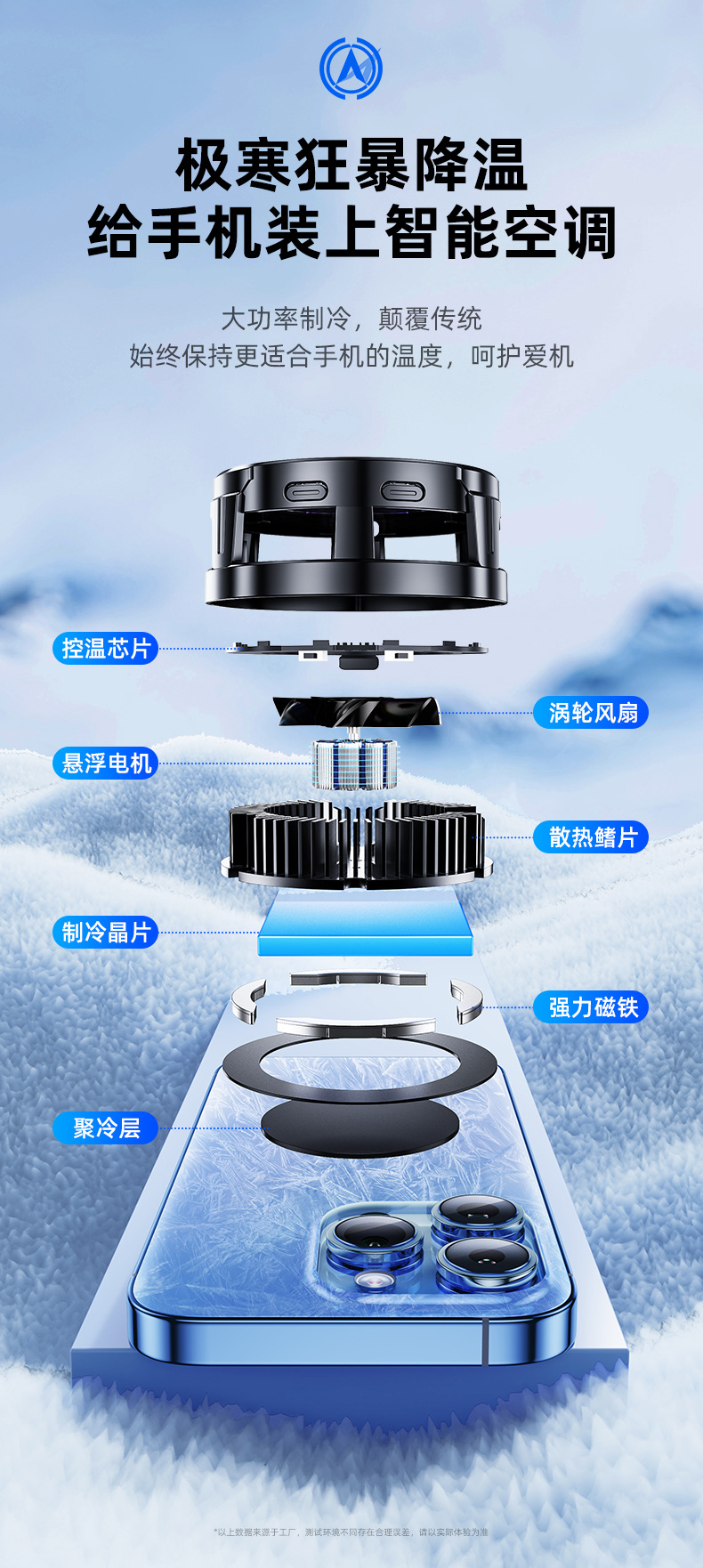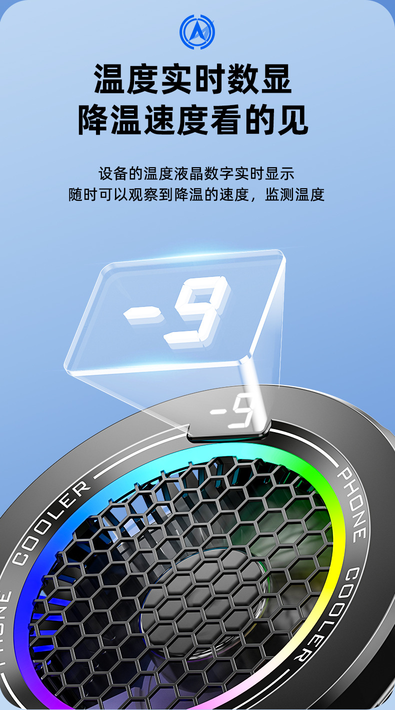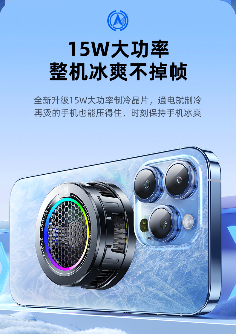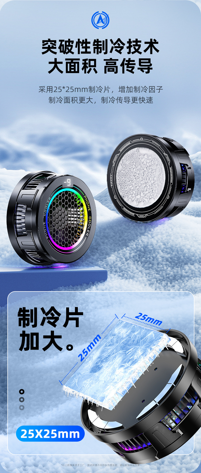 新款X108手机散热器数显三档调节磁吸背夹结冰半导体冰封散热器