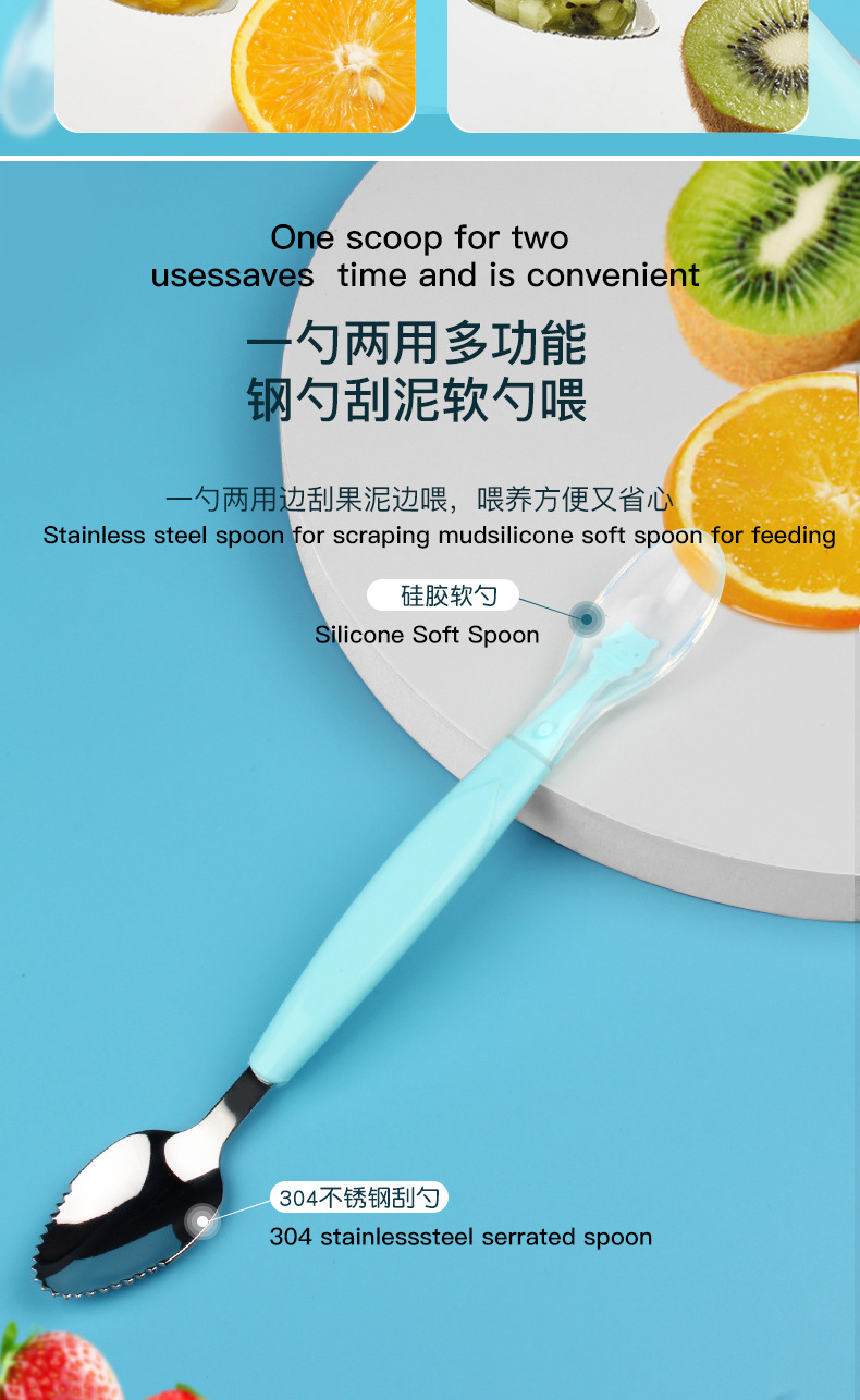 婴儿水果刮喂双头刮泥勺硅胶软勺调羹宝宝收纳盒刮泥勺子母婴用品