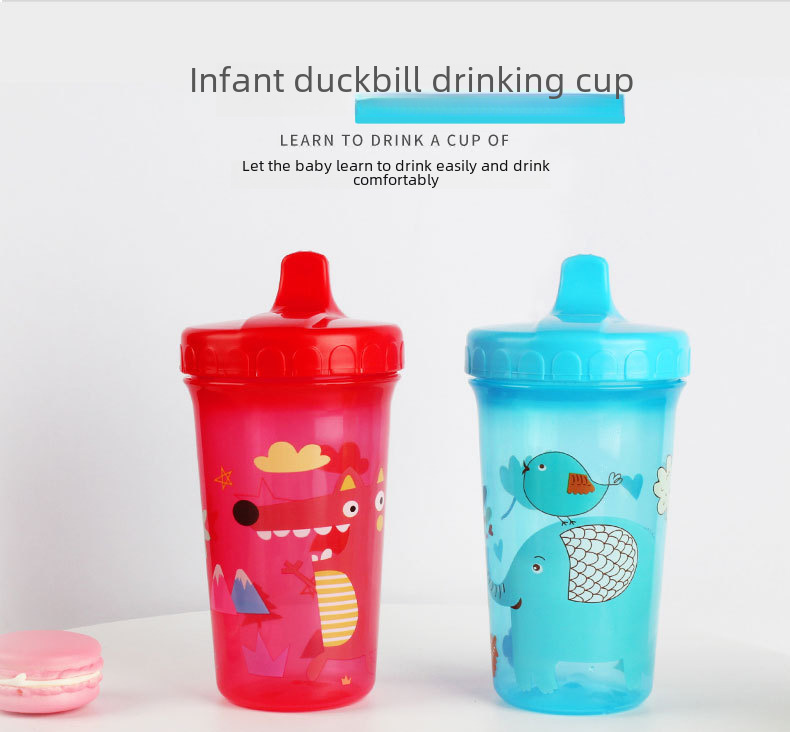 防摔耐咬婴儿鸭嘴学饮杯sippycup300ML大容量水杯密封防漏塑料杯