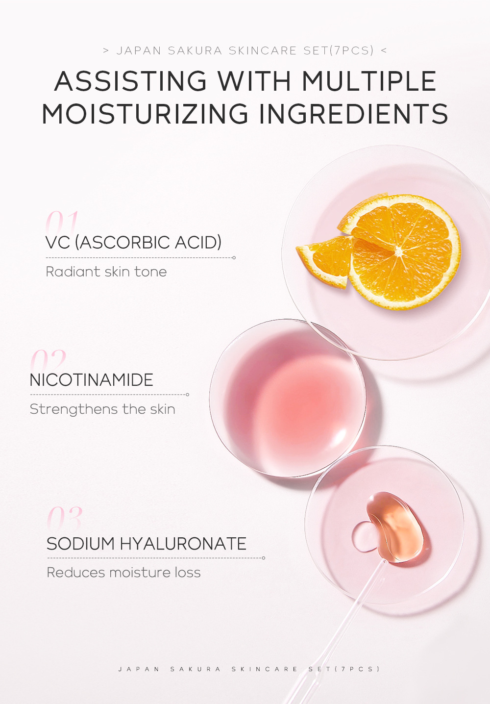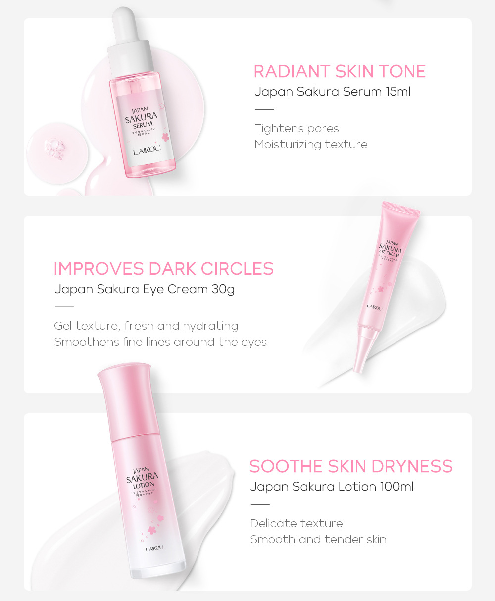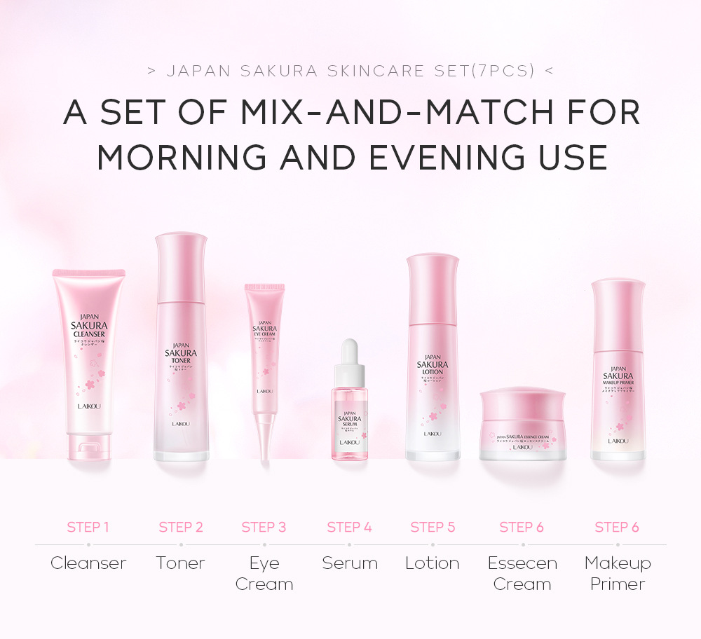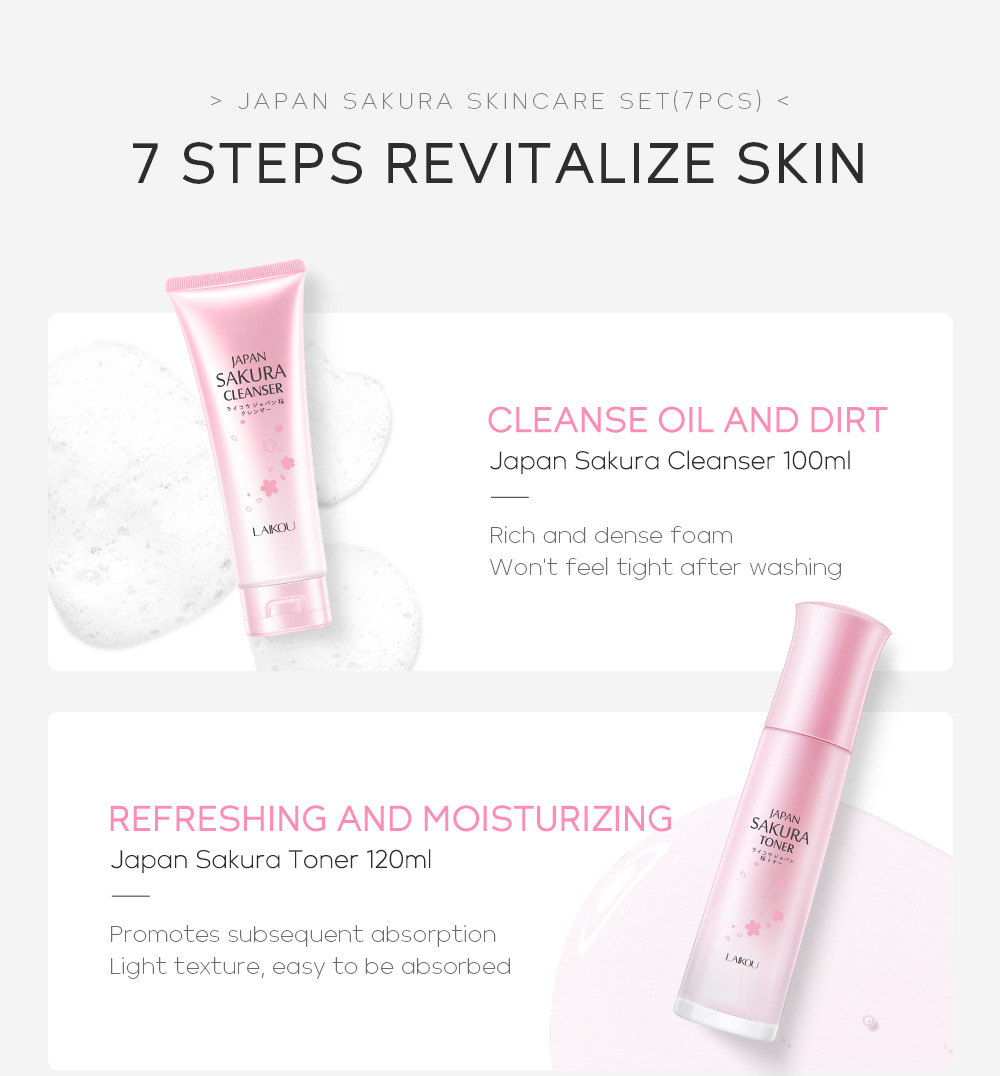 跨境LAIKOU莱蔻樱花护肤礼盒套装保湿补水7件套盒厂家货源批发