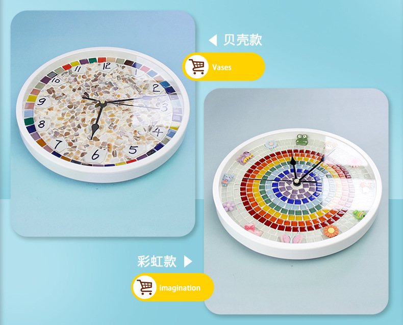 手工diy自己做自制挂钟 时钟创意拼贴粘贴制作儿童成人玩具材料包